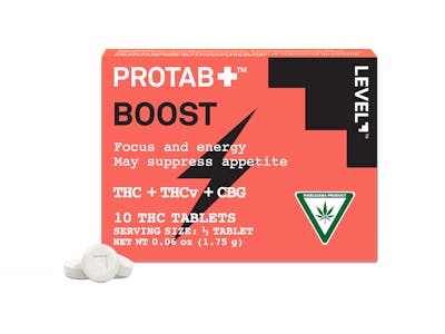 LEVEL LEVEL | Tablets | Protab+ Boost | 20mg THC + THCv + CBG | 10 Pack